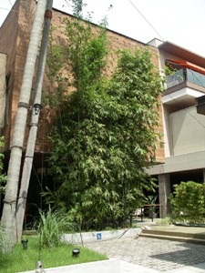 地下茎を伸ばさず、大きな株を作り、株が密集して立ち上がります。かなり大型です。日本の竹とは趣が異なり、ブッシュ状の緑を形成します。稈は鮮やかな緑色でつやがあり、大変美しい。