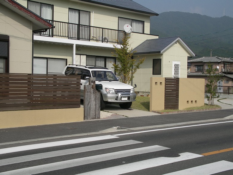 道路沿いは塗壁と板柵で構成しています。