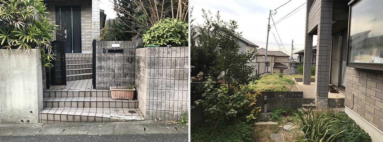 門塀、門扉、アプローチ階段の改修とタイルテラスの新設を行いました。
